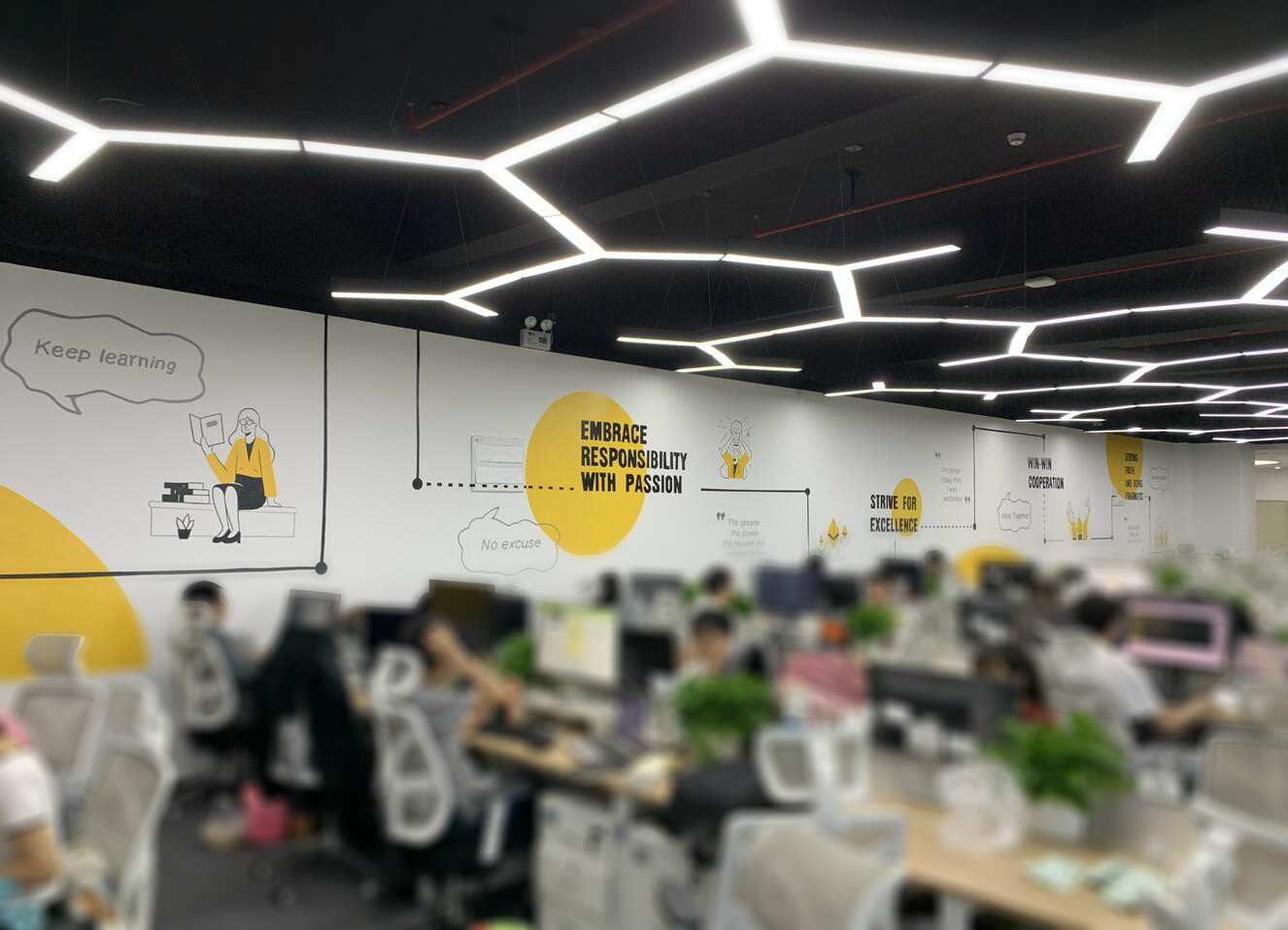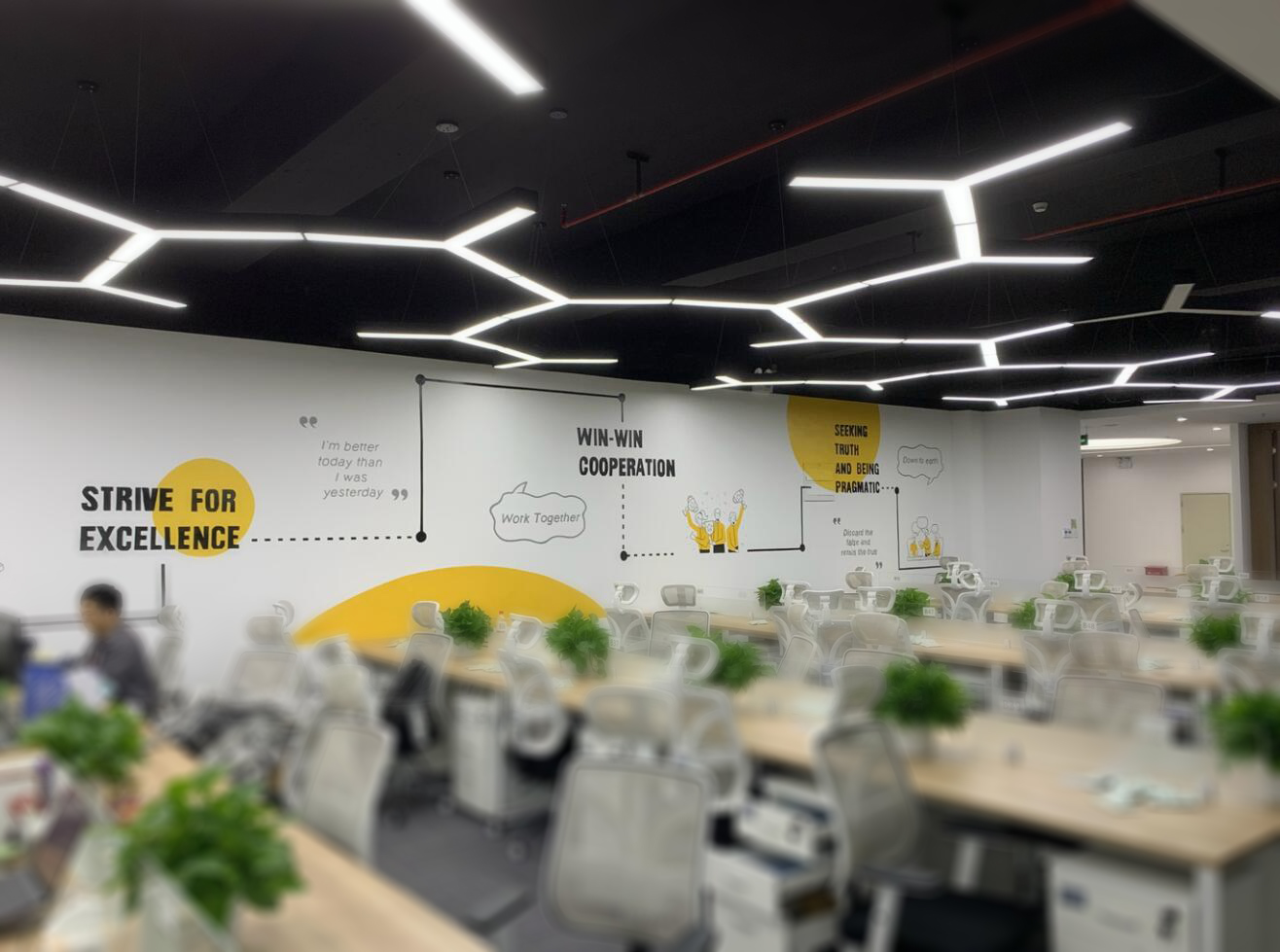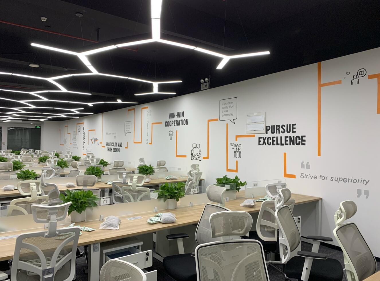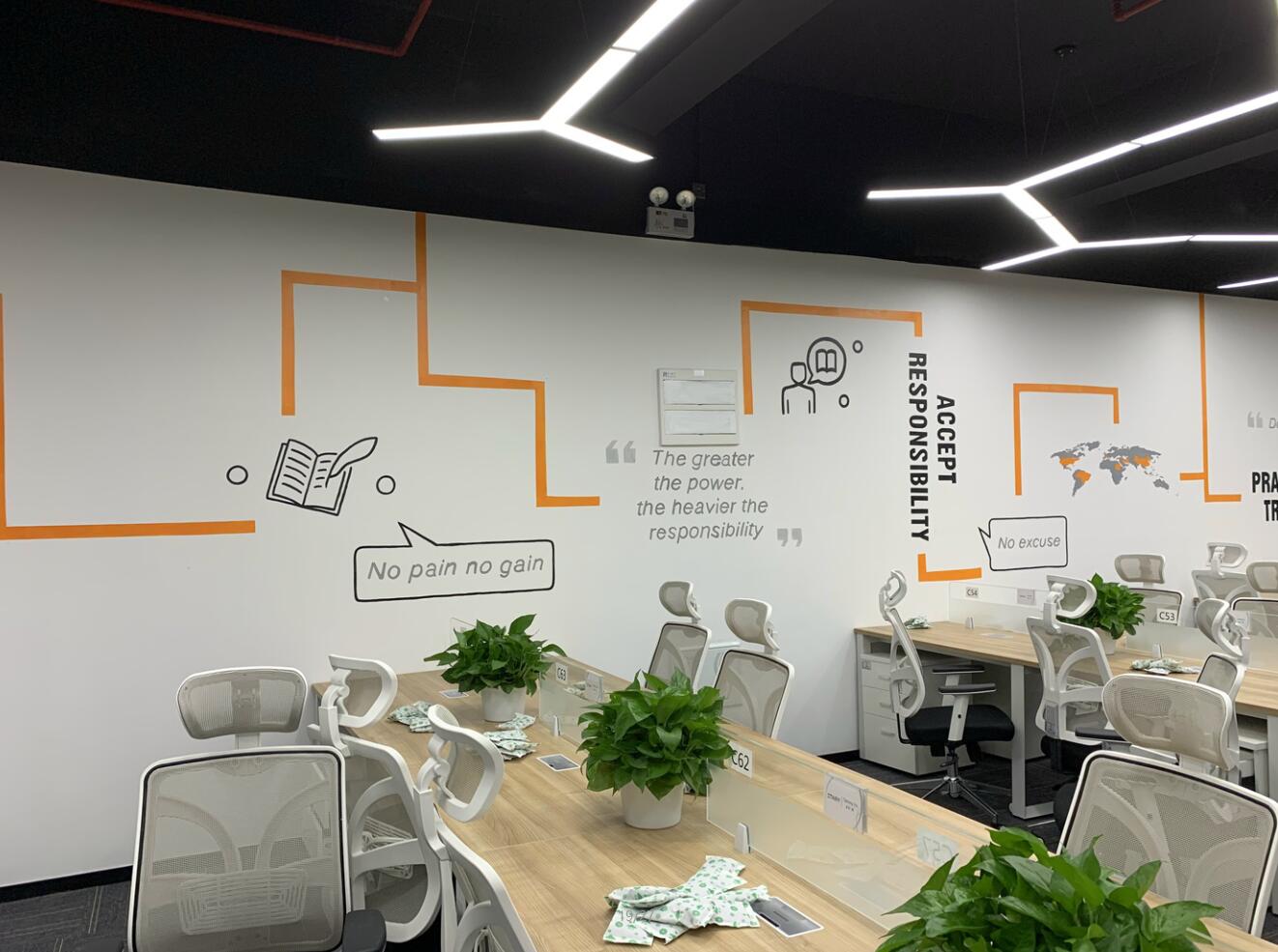 整體輕裝飾、不破壞墻體。辦公家具已入位固定,員工已陸續(xù)搬入。